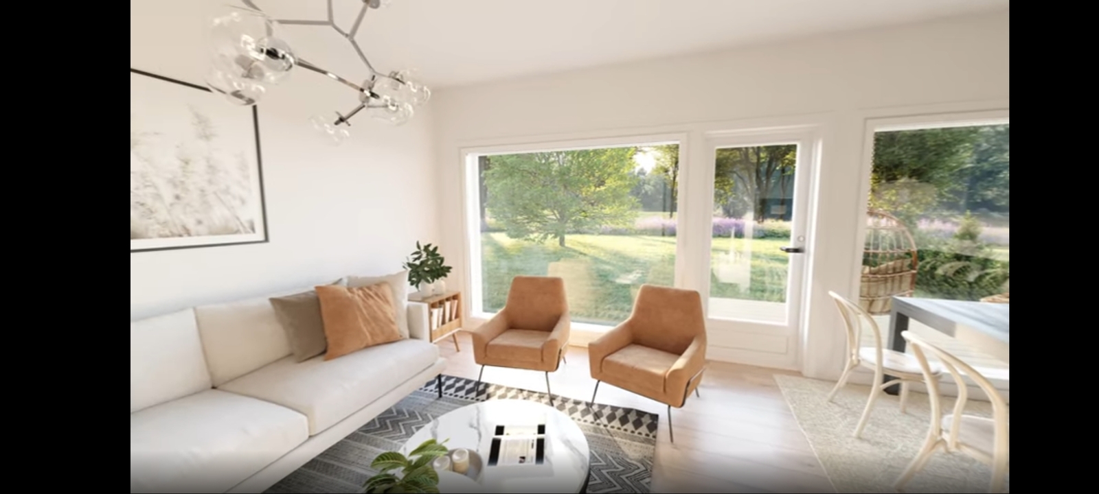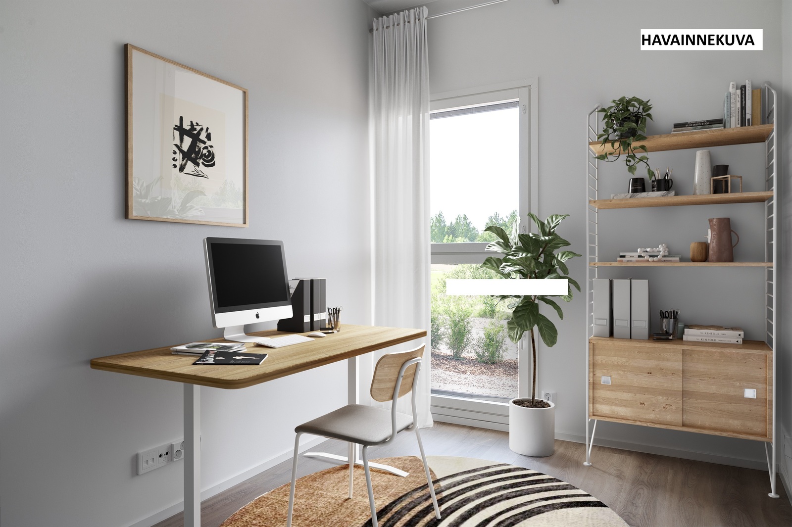 Talossa on kaksi makuuhuonetta, avokeittiö ja olohuone, jotka luovat avaran ja valoisan kokonaisuuden.