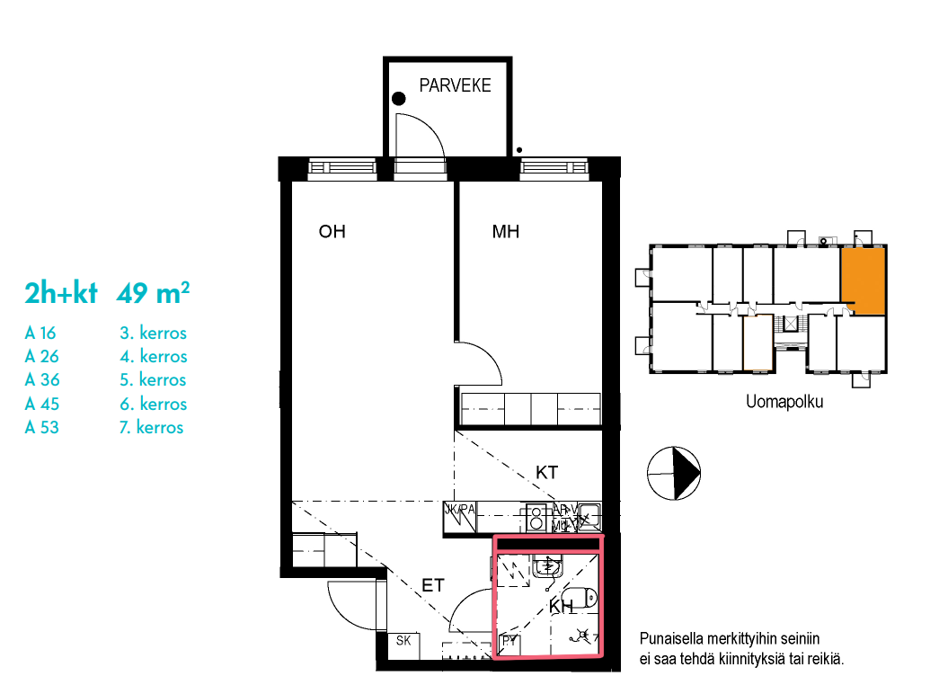 | Muuta taloyhtiöstä | Urheiluvälinevarasto, pesutupa ja sauna, huoneistokohtaiset varastot |