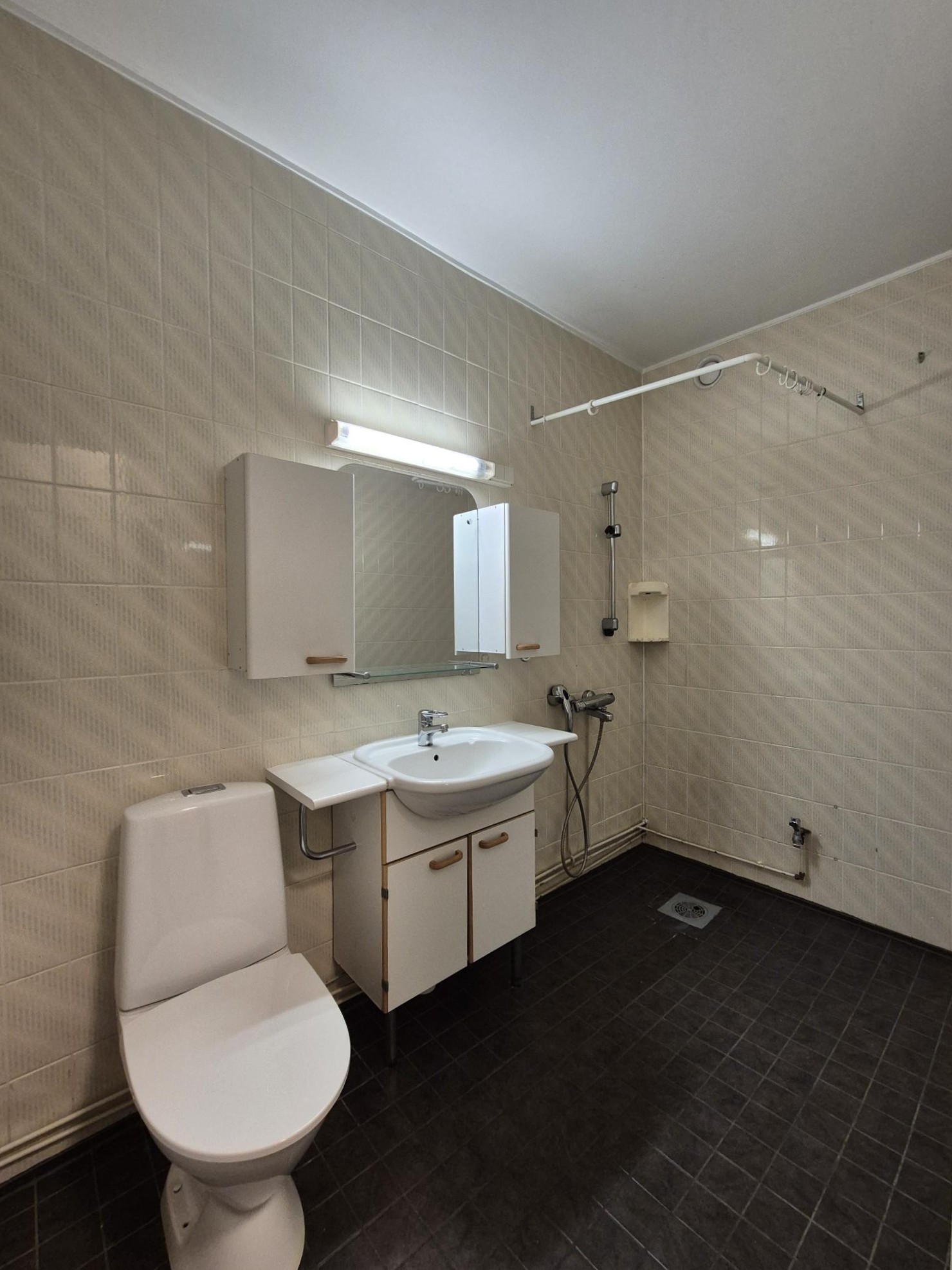 | Kylpyhuoneen kuvaus | WC-istuin, suihku, pesukoneliitäntä, pesuallas, peili ja allaskaappi, seinät (kaakeli), lattiat (laatta) |