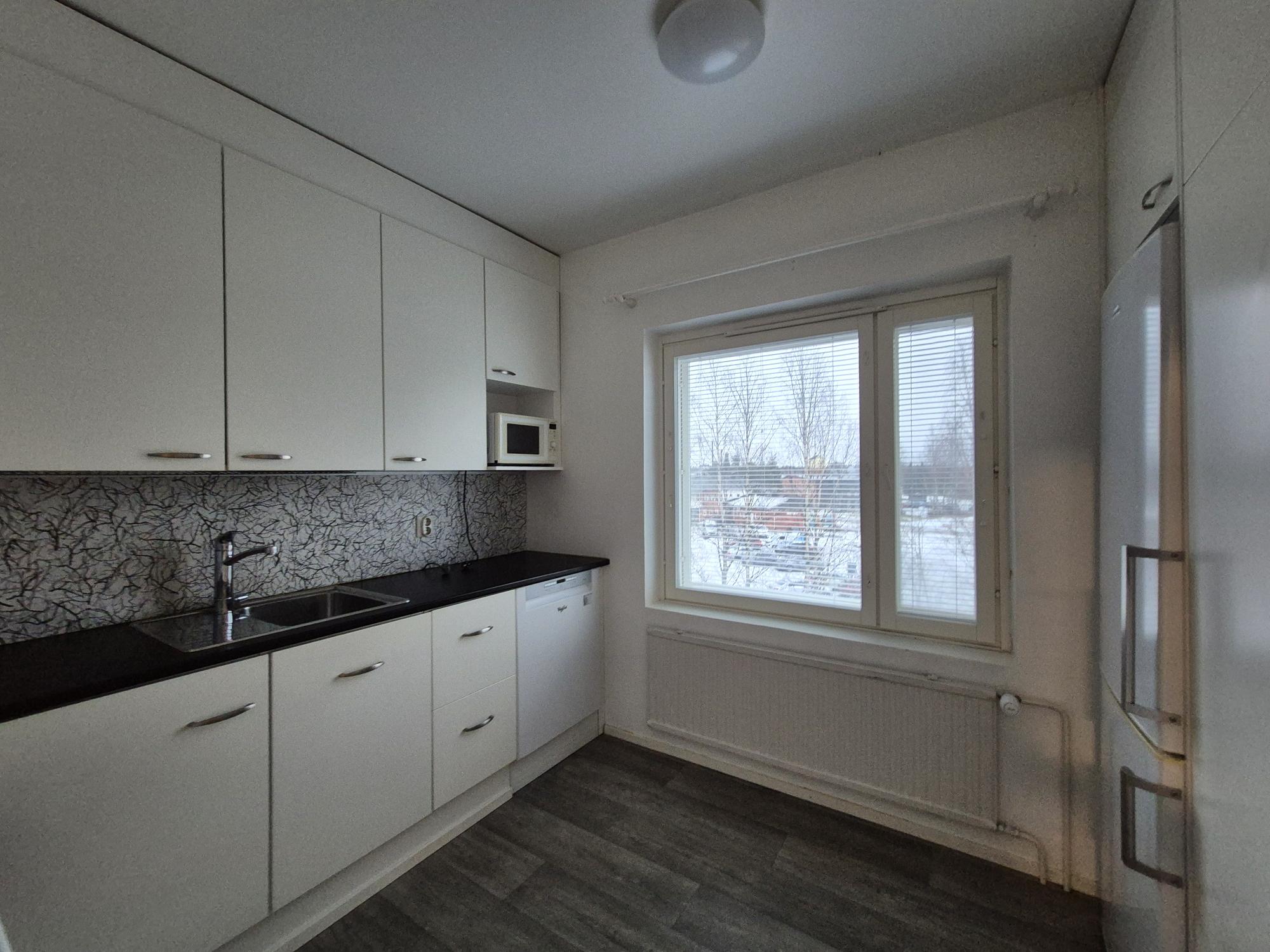 | Keittiön kuvaus | Liesi (Keraaminen liesi), työtasot (laminaatti), seinät (maali), lattiat (muovimatto), jääkaappi, jääkaappipakastin, uuni, liesi, mikroaaltouuni, astianpesukone ja liesituuletin |