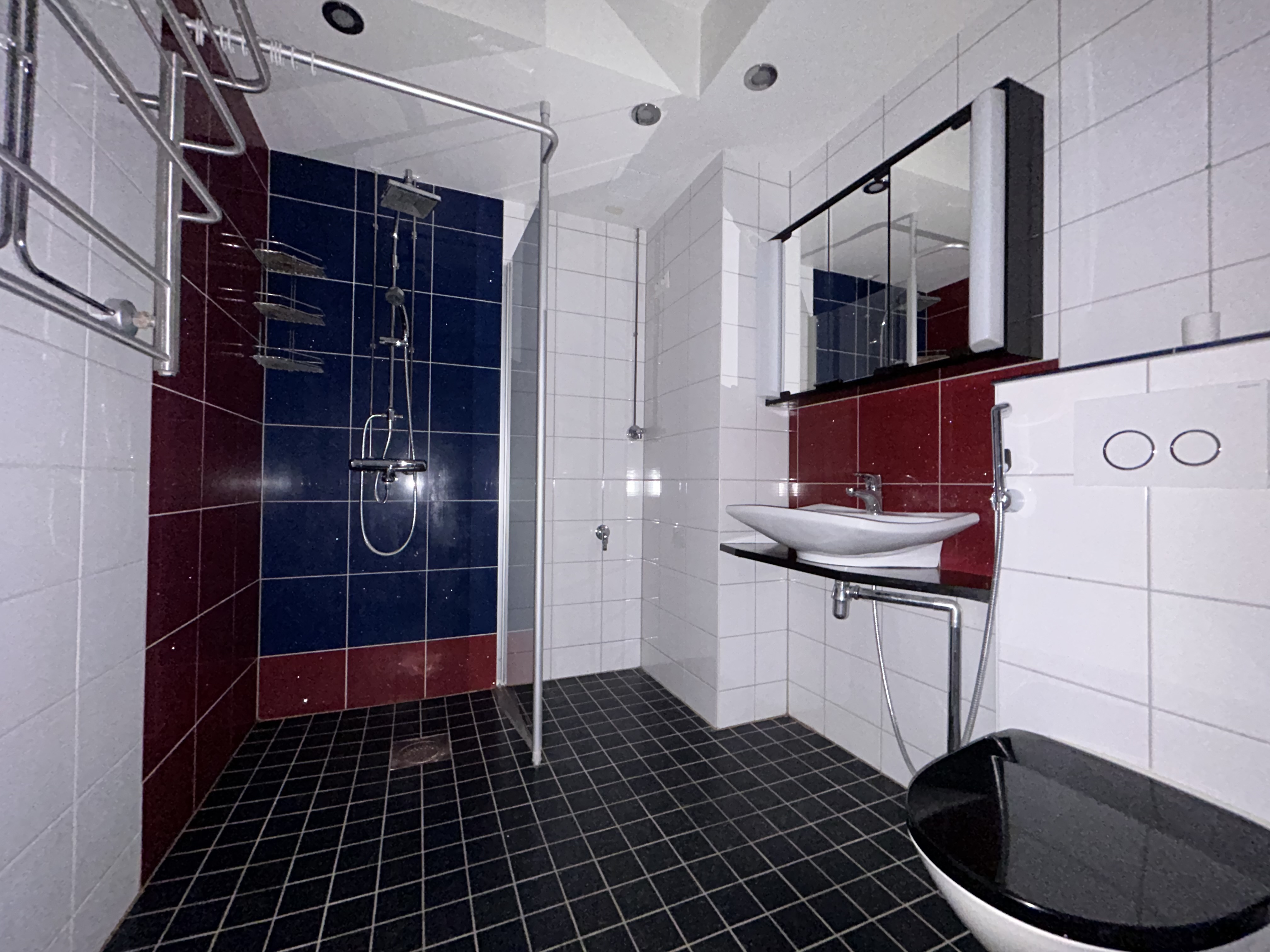 WC-istuin, suihku, suihkuseinä, pesukoneliitäntä, bidee-suihku, lattialämmitys, pesuallas ja peilikaappi |