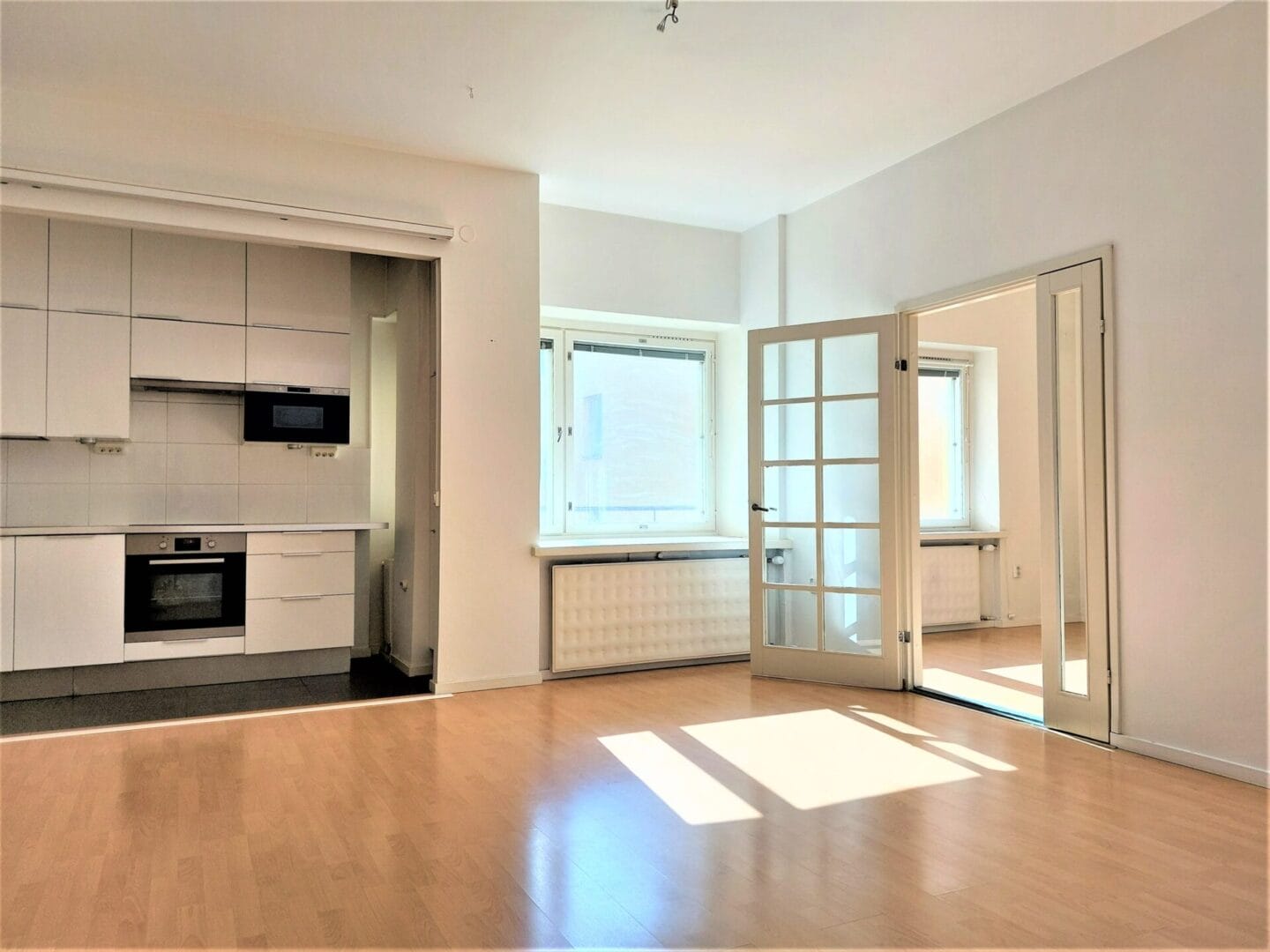 Tyylikäs huoneisto, jossa tammikuun aikana asennetaan uudet parketit.