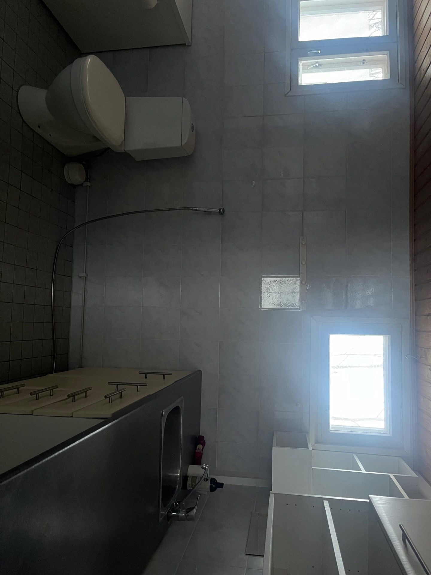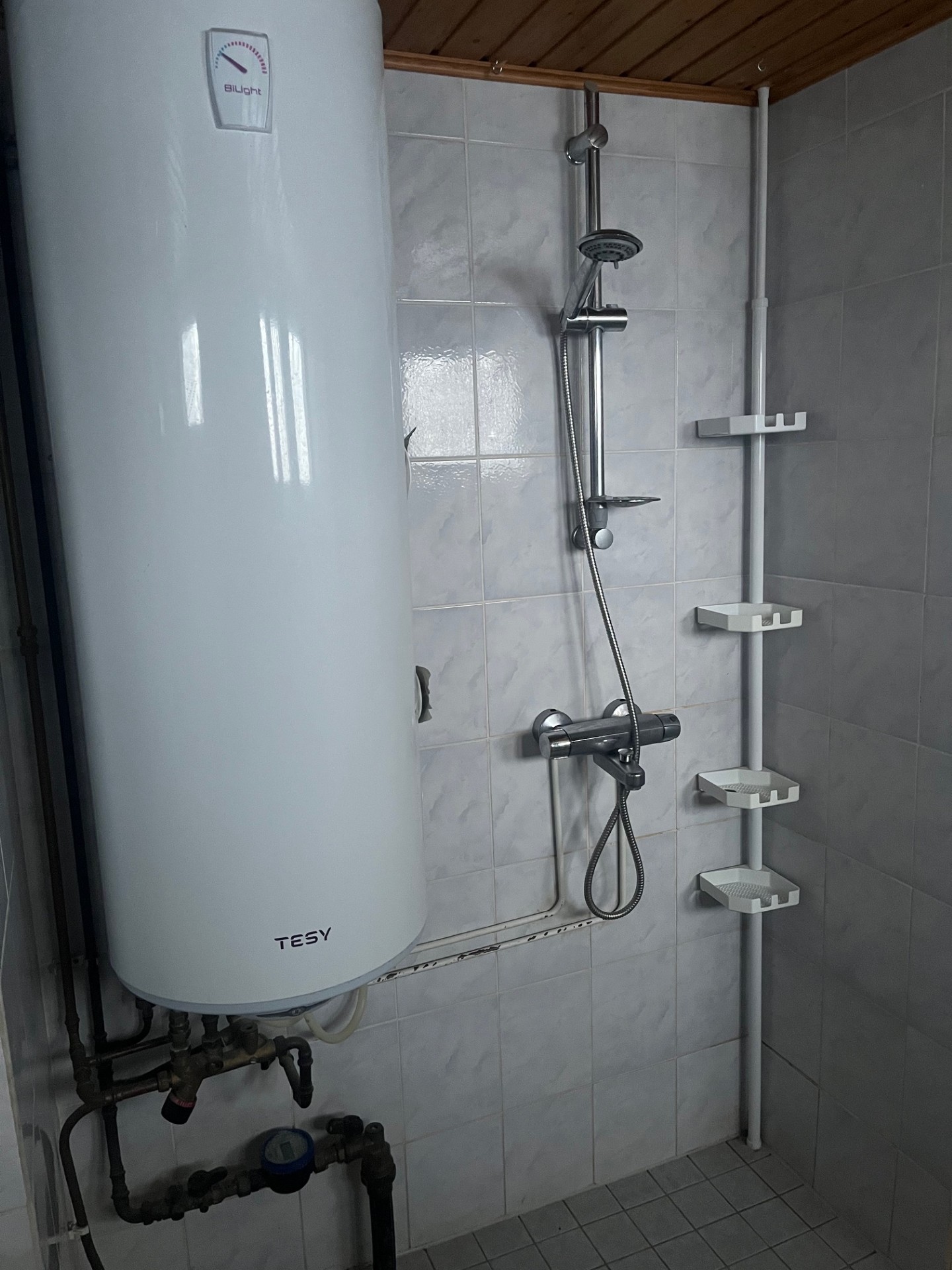 WC-istuin, suihku, peili, pesuallas, allaskaappi, bidee-suihku, lattialämmitys, pesukoneliitäntä ja lämminvesivaraaja, seinät (kaakeli), lattiat (laatta) |