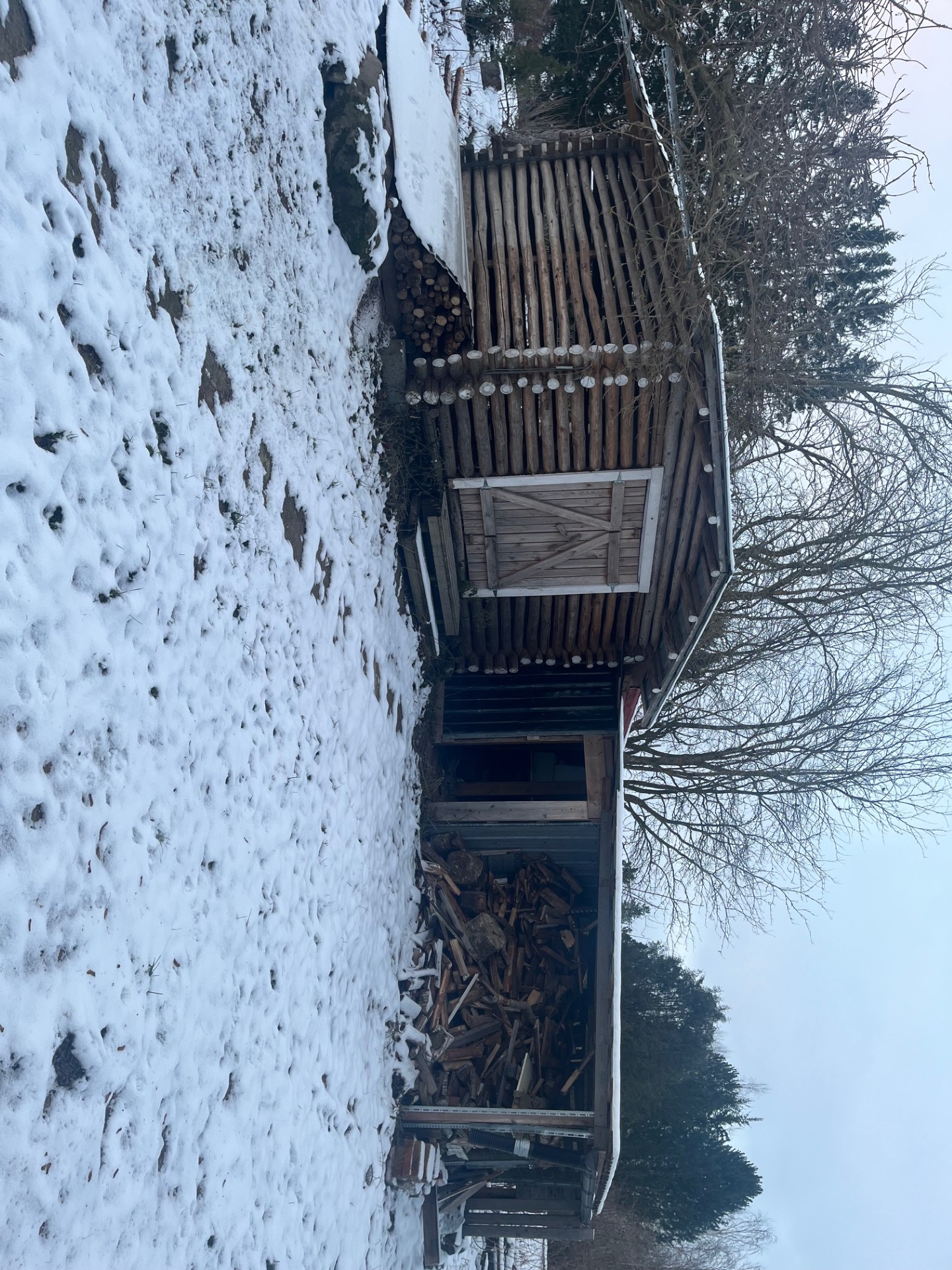 Pihapiirissä on varasto/autokatos ja puuliiterit. |
