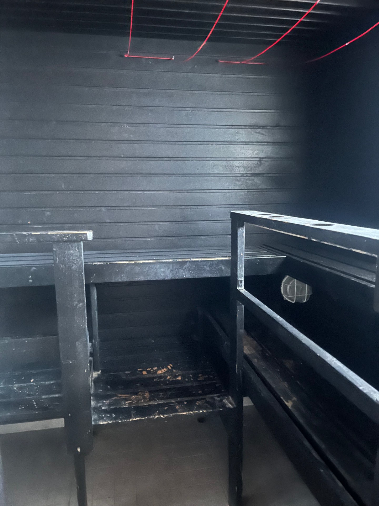 Seinät (kaakeli ja paneeli), lattiat (laatta), Puukiuas |